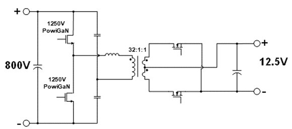 The proposed structure of the intermediate bus converter (IBC) using PowiGaN is shown in Figure 2: