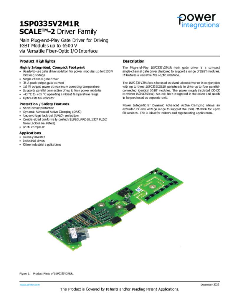 Single-Channel SCALE-2 Plug-and-Play Driver for IGBTs from 3300 V to 6500 V with external DC/DC Converter, Designed for Railway Applications