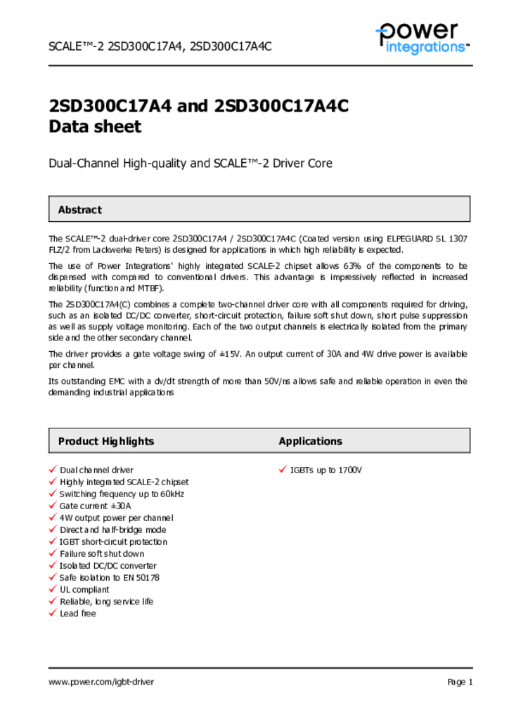 2SD300C17A4 Data Sheet Second source for Infineon™ 2ED300C17-S, 30 A gate current and 2 x 4 W drive power PDF 다운로드 PDF 보기 Login Required A MyPI account is required to receive email notifications for document updates. Please login or register for an account to continue. Continue × 업데이트 알림 받기 애플리케이션 제품 2SD300C17