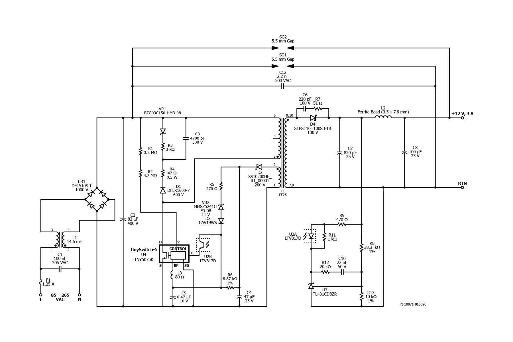 36 W isolated flyback power supply for appliances using TinySwitch-5 (TNY5075K)