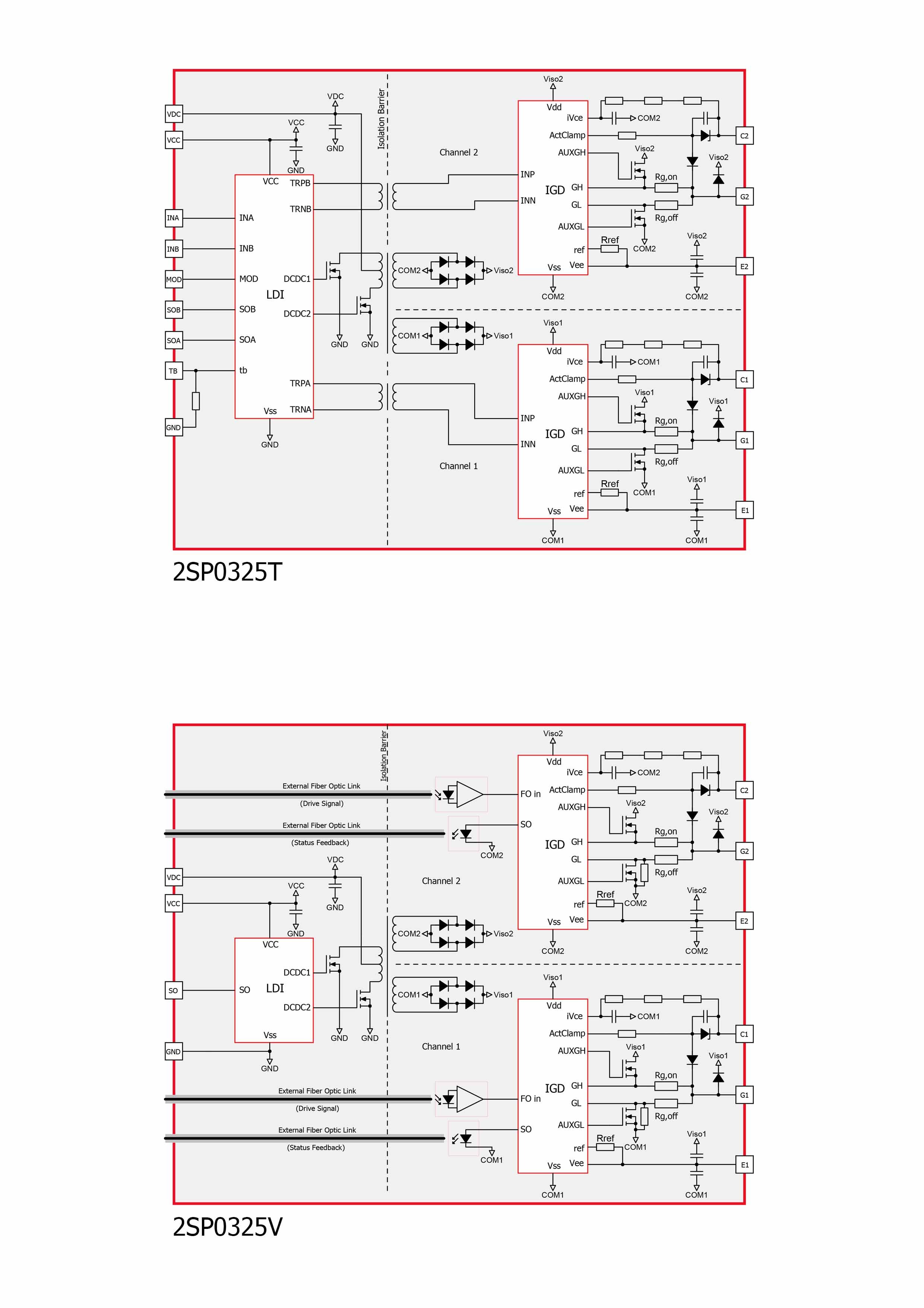 The 2SP0325 driver is available with one electrical and two fiber-optic interfaces: