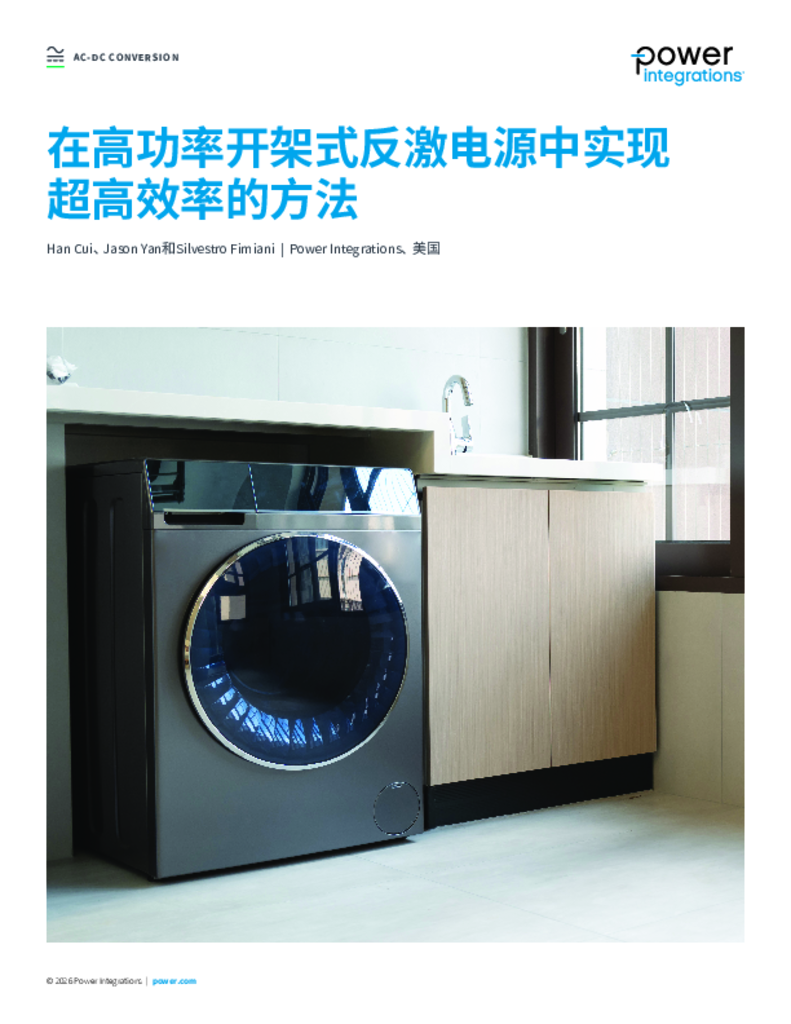 在高功率开架式反激电源中实现 超高效率的方法 得益于宽禁带(WBG)开关、同步整流(SR)和自适应控制技术的进步,反激式变换器的效率得以提高,使其能够应用于以往通常依赖谐振拓扑结构的应用场景。 本文提出了一种混合开关控制方法,可在宽负载范围内保持高效率。采用750V GaN初级开关并结合可变关断时间PWM控制的300W设计方案,在未增加系统复杂性或显著提高成本的情况下,实现了93%的效率。设计过程中对SR、零电压开关(ZVS)以及宽禁带器件的相关考量进行了分析。 下载PDF 查看PDF Login Required A MyPI account is required to receive email notifications for document updates. Please login or register for an account to continue. Continue × 文件更新请通知我 应用 产品 TinySwitch-5