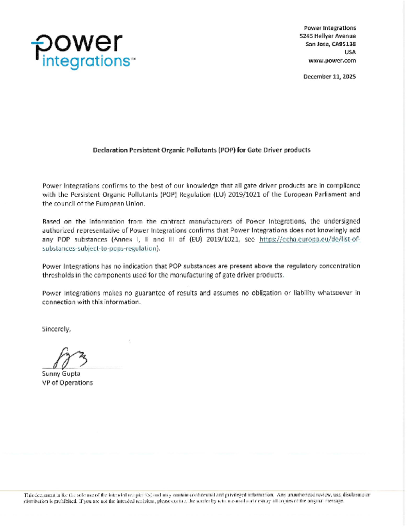 Declaration on Persistent Organic Pollutants (POP) for Gate Driver Products 下載 PDF 檢視 PDF Login Required A MyPI account is required to receive email notifications for document updates. Please login or register for an account to continue. Continue × 文件更新請通知我