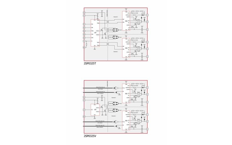 The 2SP0325 driver is available with one electrical and two fiber-optic interfaces: